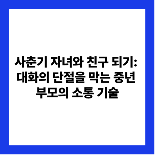 사춘기 자녀와 공감대를 형성하고, 끊어진 대화의 끈을 다시 잇는 중년 부모를 위한 실질적인 소통 기술에 대하여 자세히 알려드리겠습니다. 이 기술은 자녀의 명예로운 성장을 돕고, 부모의 심리적 건강을 지켜줄 것입니다.