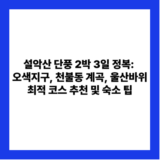 이 2박 3일 코스를 통해 설악산의 다채로운 가을을 안전하고 완벽하게 만끽하시길 바랍니다.