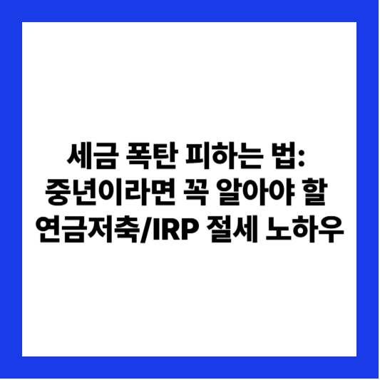 세테크는 곧 재테크입니다. 중년이라면 반드시 알아야 할 연말정산 세액공제부터 복리 투자까지, 돈과 명예를 모두 지켜줄 연금저축/IRP 절세 노하우를 구체적으로 알려드립니다.