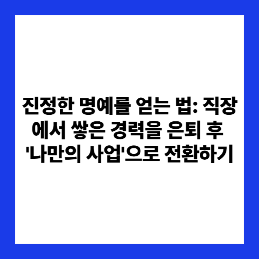 직장에서 쌓은 명예를 은퇴 후에도 이어가며, 경제적 자유(돈)까지 누리는 중년의 성공적인 인생 후반전을 응원합니다.