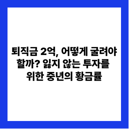 40대 후반에서 50대 초반, 퇴직을 앞두거나 이미 퇴직금을 수령한 분들에게 퇴직금은 인생 후반전을 설계할 수 있는 가장 큰 종잣돈입니다. 예를 들어, 2억 원이라는 목돈은 막막했던 은퇴 준비에 한 줄기 빛이 되지만, 동시에 '이 돈을 잃으면 끝'이라는 불안감을 안겨주기도 합니다.