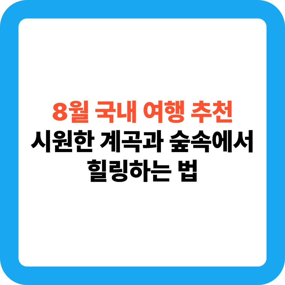 시원한 바람과 물, 푸른 숲이 있는 곳으로 떠나는 여행은 8월의 더위를 이기는 가장 좋은 방법입니다. 이번 여름에는 자연이 주는 평온함 속에서 잊지 못할 추억을 만들어보세요.